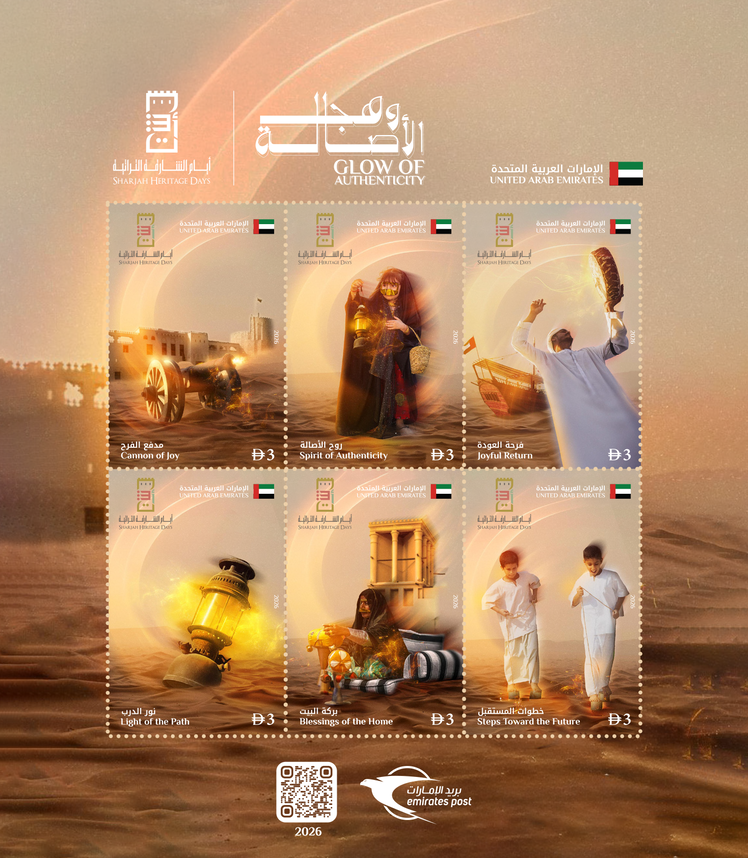 في هذا الإصدار التذكاري الأول الذي يُخصصه بريد الإمارات لـ”أيام الشارقة التراثية”، يسلّط الضوء على مكانة الطوابع بوصفها سجلاً وطنياً يوثق المحطات الثقافية، ويصون الذاكرة الجماعية، عبر سرد بصري راسخ يخلّد قِيم التراث والهوية.