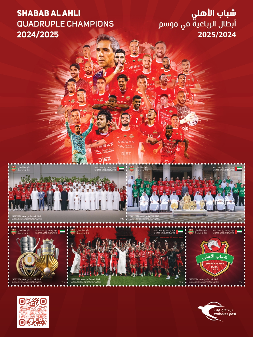 وتوثيقًا لهذا الإنجاز التاريخي، أصدر بريد الإمارات مجموعة طوابع تذكارية تحمل شعار نادي شباب الأهلي، لتكون الأولى من نوعها التي تحمل شعار نادٍ إماراتي في تاريخ الدولة.