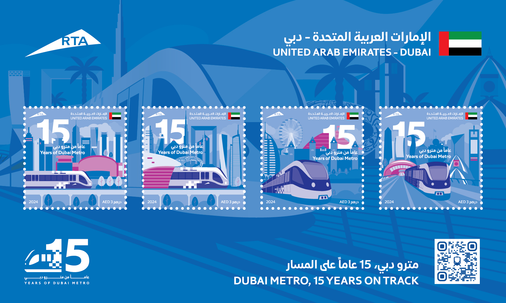 7X, in collaboration with the Roads and Transport Authority (RTA), has issued special commemorative stamps to celebrate the 15th anniversary of Dubai Metro.
